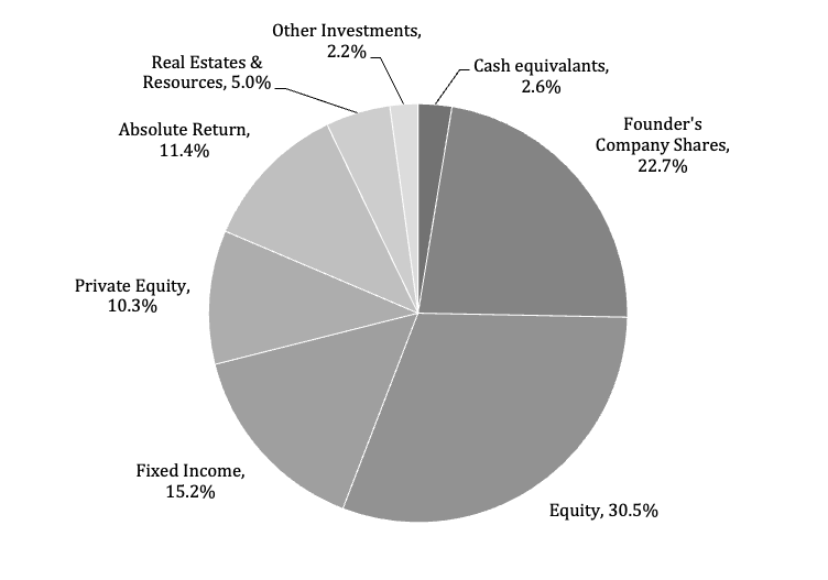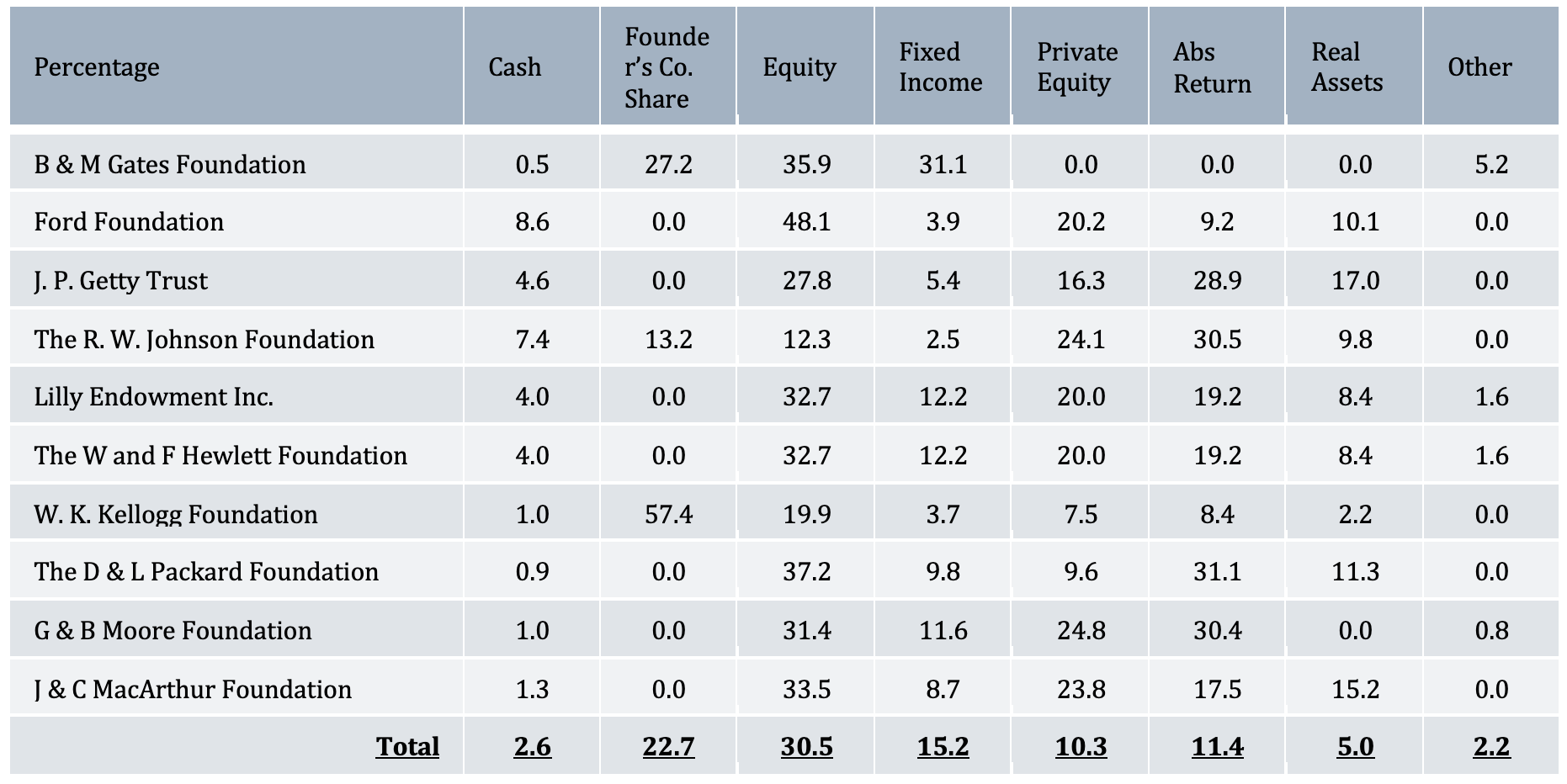 The asset allocation of major U.S. foundations generally varies, with more institutional foundations divested from more volatile single-name equity exposure that is often the root of the foundation’s wealth.