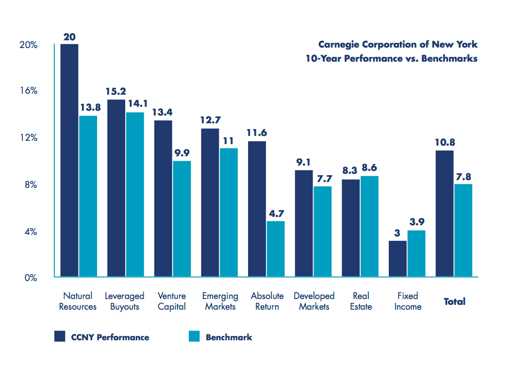 Key to the Carnegie Corporation’s success has been its steady diversification, including a gradual movement away from high direct equity exposure—particularly in response to the 2007-08 financial crisis.