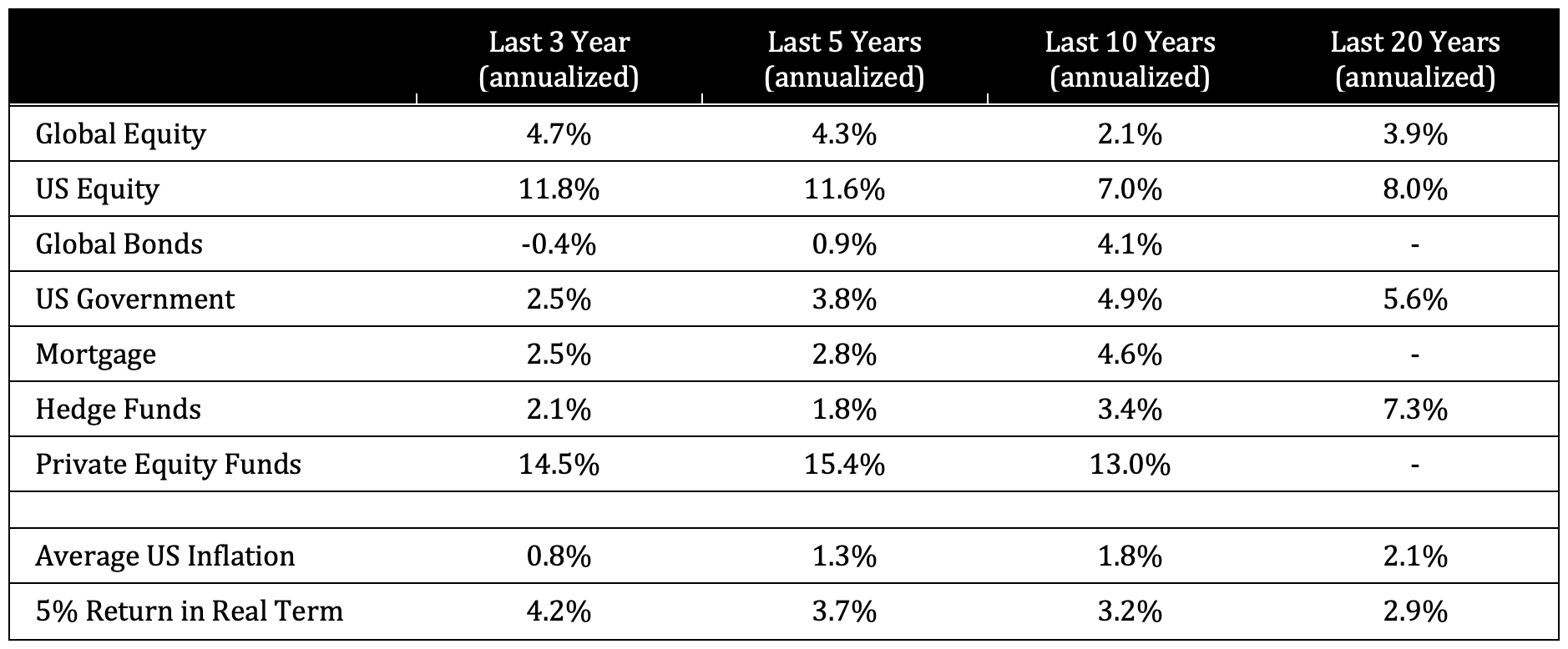 Historical Performance of Key Asset Classes