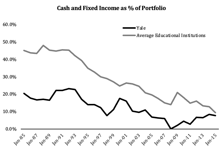 Yale has led the pack into allocations to alternatives